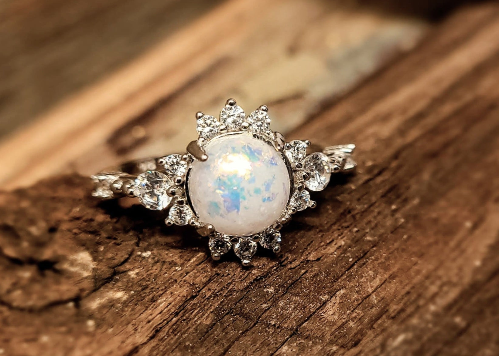 The Compass Ring features a sterling silver band encircled by a delicate halo of sparkling cubic zirconia stones. Its elegant design symbolizes guidance and direction, making it a thoughtful accessory for those seeking balance and clarity in their journey. Crafted with care, this ring offers an 8mm stone for a meaningful touch of beauty and inspiration.