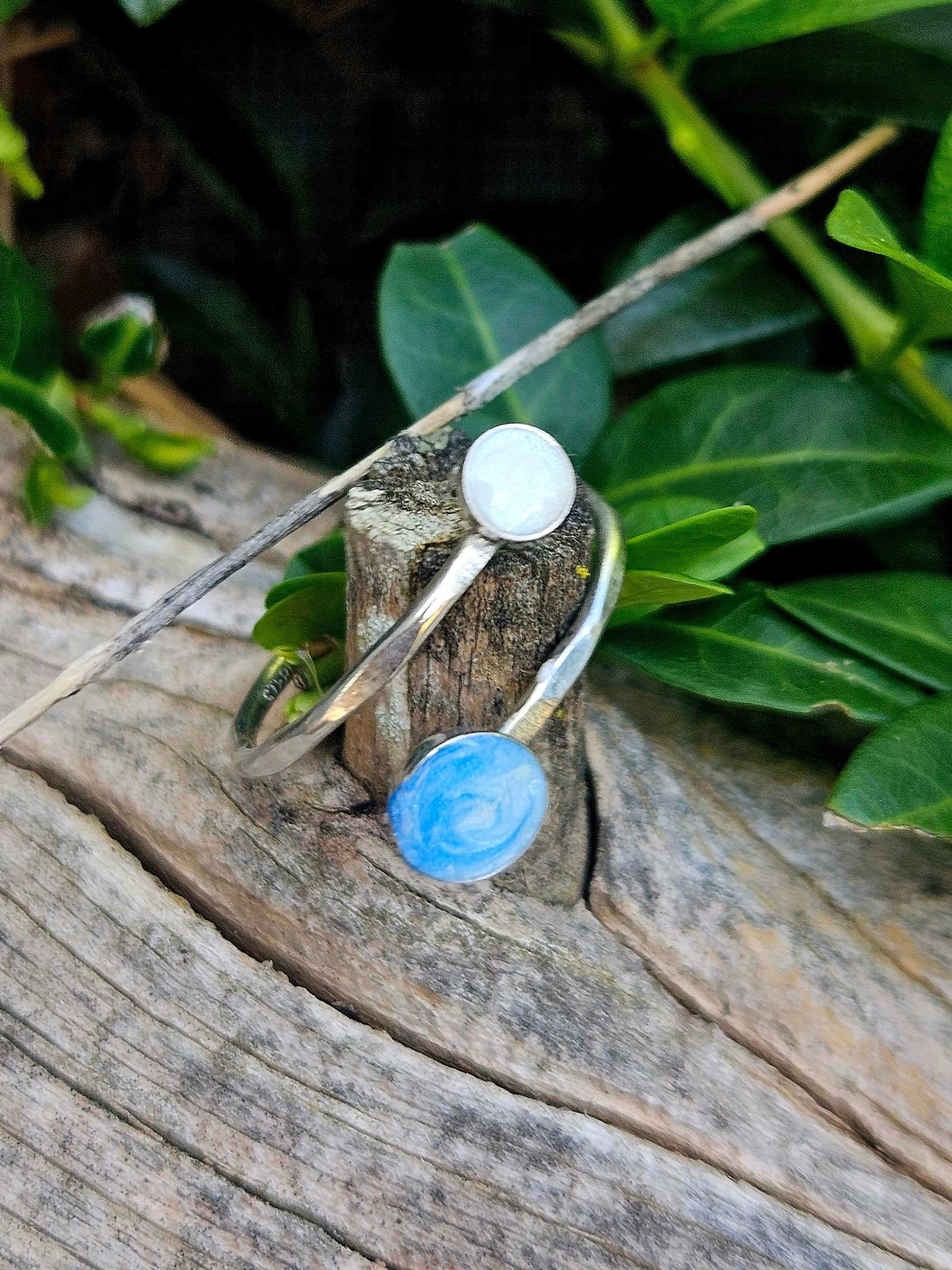 Discover the elegance of our Echo Band, featuring a distinctive double bezel design crafted in sterling silver or gold-filled. Its unique open style not only offers a comfortable fit but also highlights your individual style. Choose this ring with a hammered or smooth band. Bezel sizes are 4mm & 6mm.