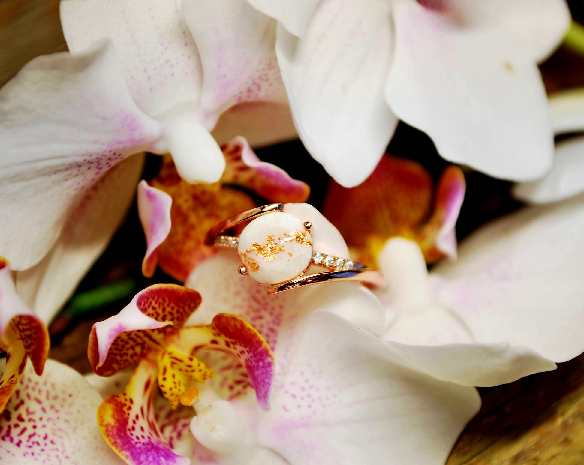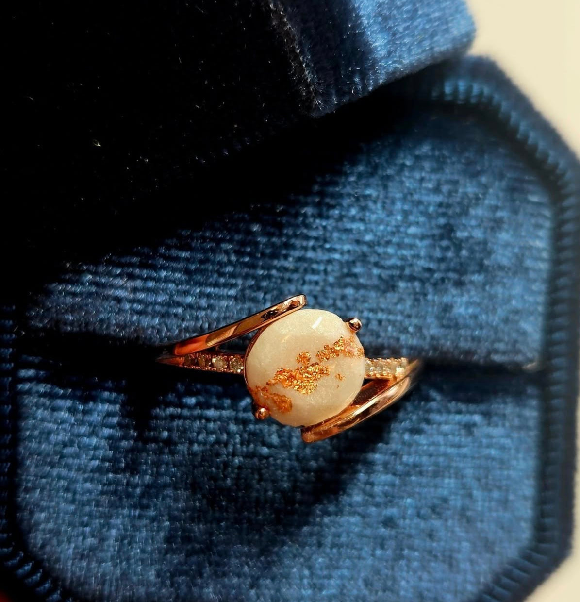 An 8mm round stone ring in sterling silver or rose gold plating, featuring a sleek abstract design for a modern, elegant look.